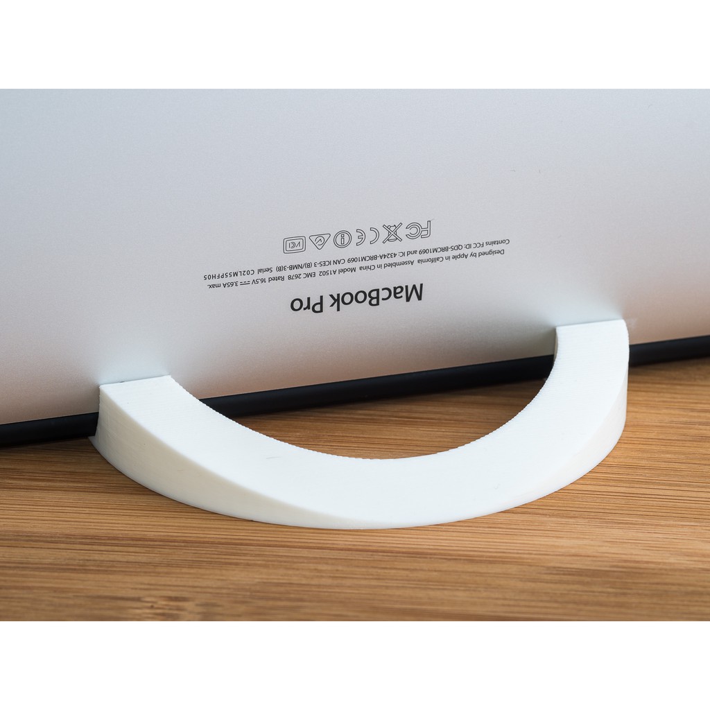 Try out one of these cool 3d printed laptop stands! . The cutout is asymmetric to match the profile of the laptop.